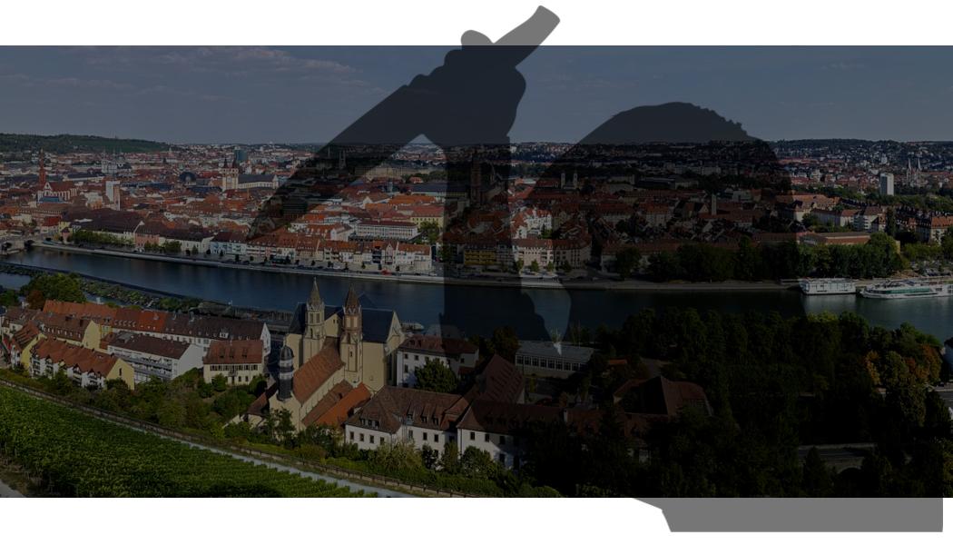 Stadtbild von Würzburg mit Fluss, darüber ist ein Messerstecher halbdurchsichtig gelegt